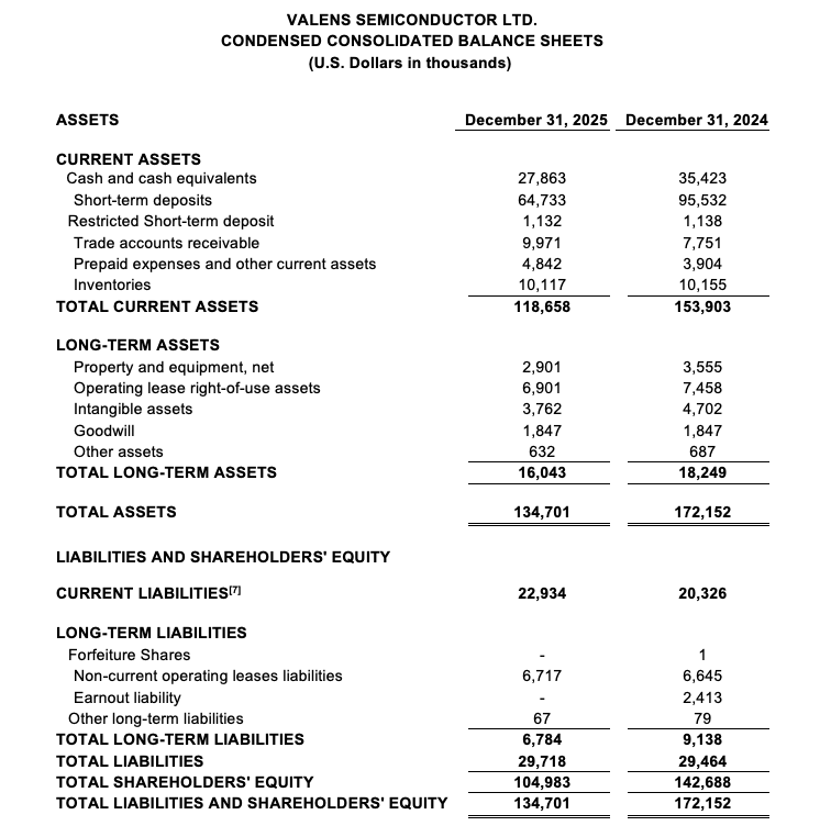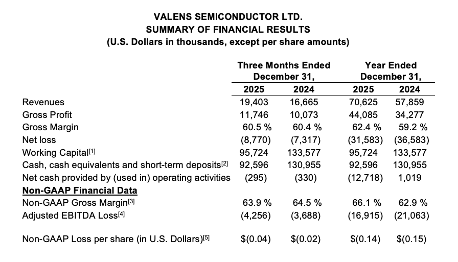 Valens Semiconductor Reports Fourth Quarter and Full Year 2025 Results
