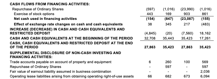 - Cash, cash equivalents and short-term deposits as of December 31, 2025 was $92.6 million with no debt. This compares to a cash balance of $93.5 million as of September 30, 2025 and $131.0 million as of December 31, 2024. During 2025 the company allocated a total of $24.0 million for share repurchase programs and spent $14.4 million for ongoing operations during 2025.